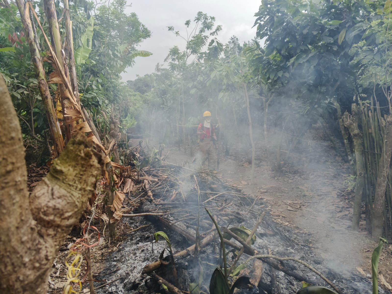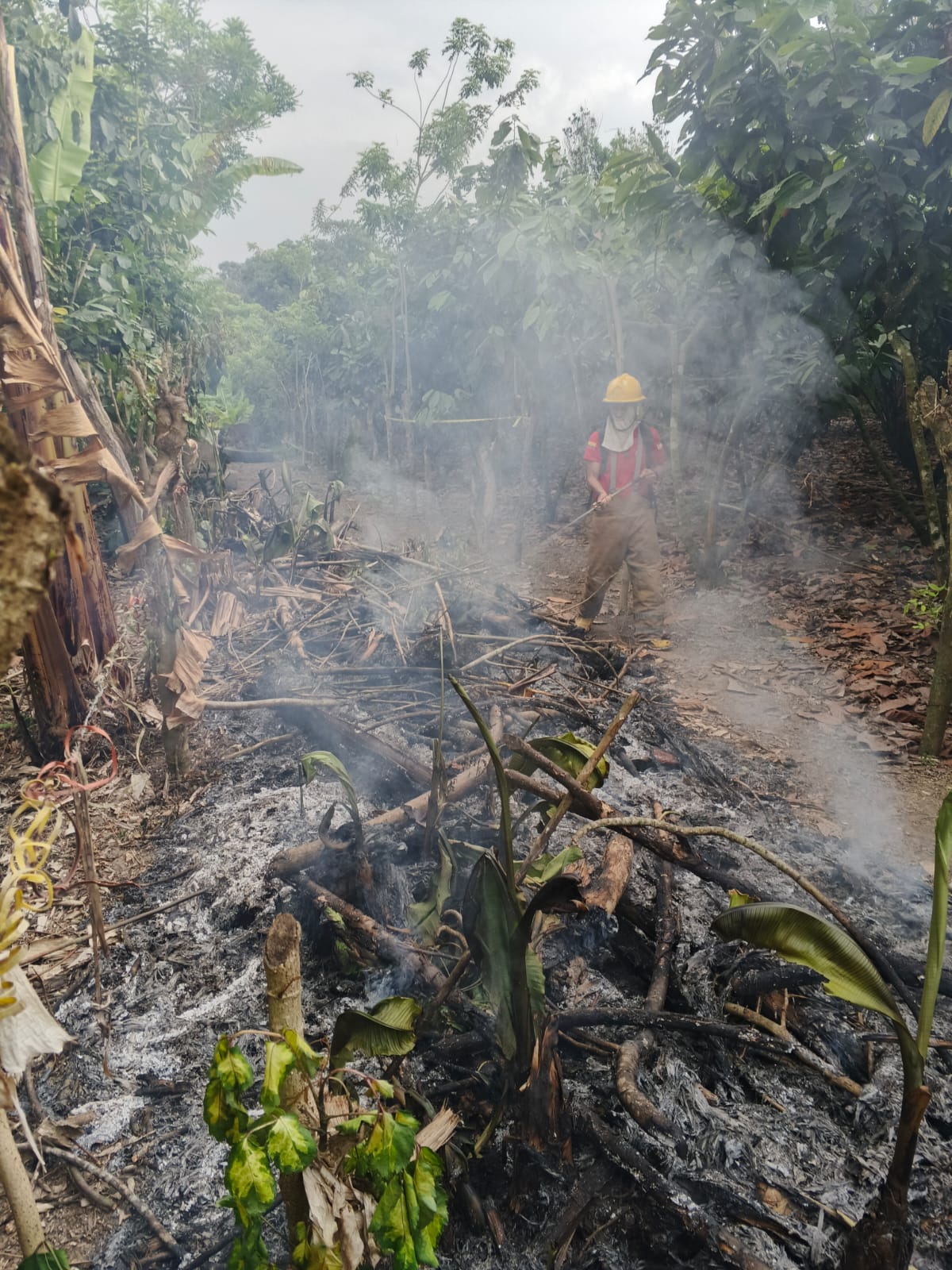 Personal del Benemerito cuerpo De Bombero colaboro en controlar una quema de maleza a lo cual se procedió a utilizar el método de enfriamiento con una mochila forestal.