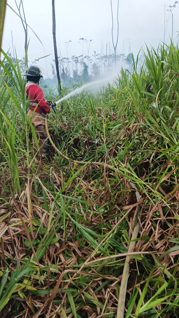 Descripción: Salida del vehiculo Mercedes hasta el Recinto El Capullo ya que mediante aviso personal se nos informó sobre un incendio forestar ,llegando al lugar se observa humo y llamas en varios puntos, a causa de la combustión del material inflamable (maleza, y madera) que se encontraba en el lugar, enseguida el personal de Bomberos, realizó a la extinción del fuego mediante el método de enfriamiento armando una línea de ataque , mochila forestal y sofocación con bate fuego para eliminar puntos calientes quedando controlado y liquidado en su totalidad acabadas las labores se retorna a la base sin novedad